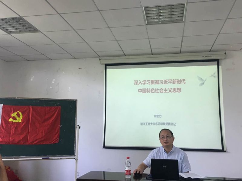 周宏力详细阐述了习近平新时代中国特色社会主义思想的核心要义和丰富内涵、时代背景和历史贡献以及实践要求等方面的内容,他要求各师生党支部要以此次主题党课学习为契机,坚持以党的十九大精神和习近平新时代中国特色社会主义思想为指南,立足实际、真抓实干、开拓创新,努力在思想引领、学科建设、教学服务等方面取得新的、更大的成绩。