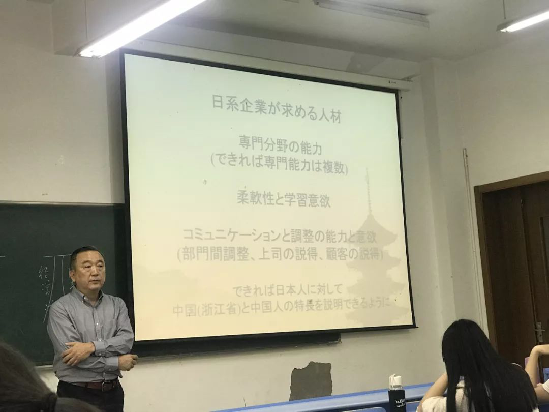 青柳先生则是从实业方面入手,讲述怎样解读经营学,而且用馄饨店的例子来说明,生动形象。为学生们解读日企需要什么样的人才,并表示对工商大学的学生们抱有很大的期待。
