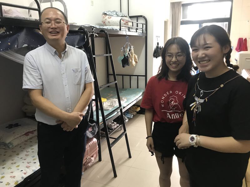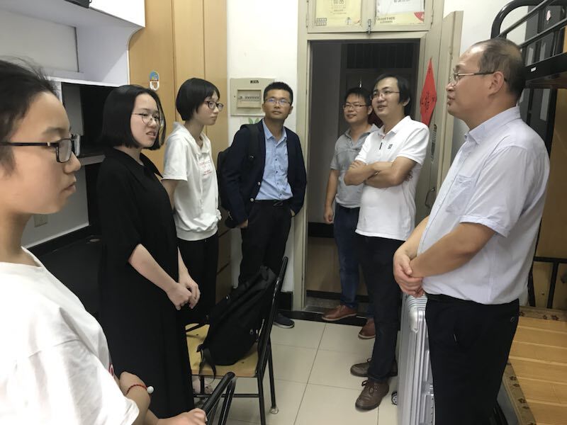 9月6日是2018级新生报到第一天,下午4时左右,学院党委书记周宏力、副院长董科在学生工作办公室主任兰大伟、新生辅导员杨月燕及18A班主任张晓东等老师的陪同下走访了新生寝室。