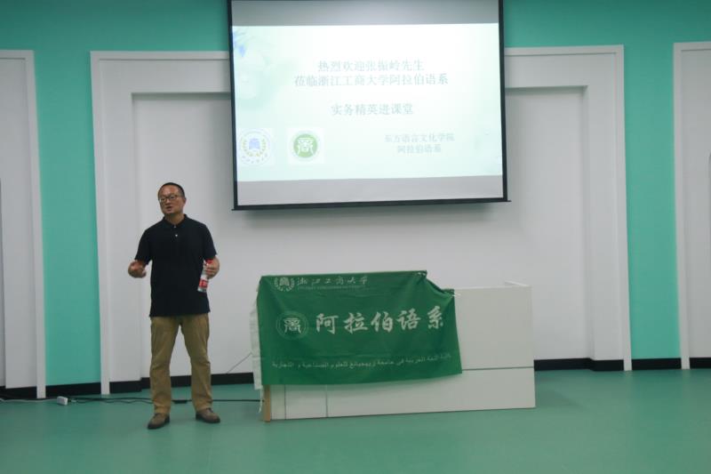 9月19日中阿卫视副台长张振岭老师来到十大博彩平台 东方语言文化十大博彩平台 阿拉伯语系为阿语系学生开展有关阿拉伯语人才培养的讲座。
