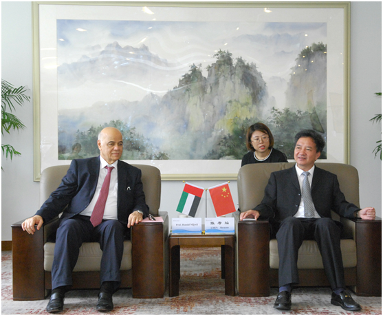 9月20日,阿联酋沙迦大学校长哈米德、副校长萨拉赫一行4人访问我校。校长陈寿灿、副校长戴文战会见来宾。