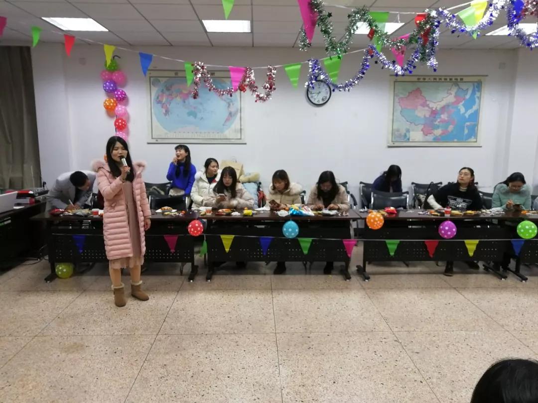 2018年12月28日晚,学院楼202会议室传来了阵阵欢乐声,期待已久的、由院研究生会主办的东方语言文化学院迎新年晚会拉开序幕,党委书记周宏力、副院长吴玲、董科应邀出席。全体18级研究生及东亚研究院副院长陈小法、学院学生工作办公室主任兰大伟、学院办公室主任明薪、外事秘书丁之群、研究生秘书谢咏、日语系李国栋、外籍教师松代章、久保辉幸等老师出席了本次晚会。