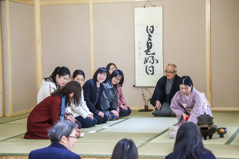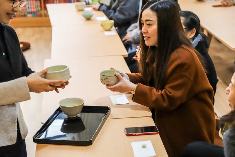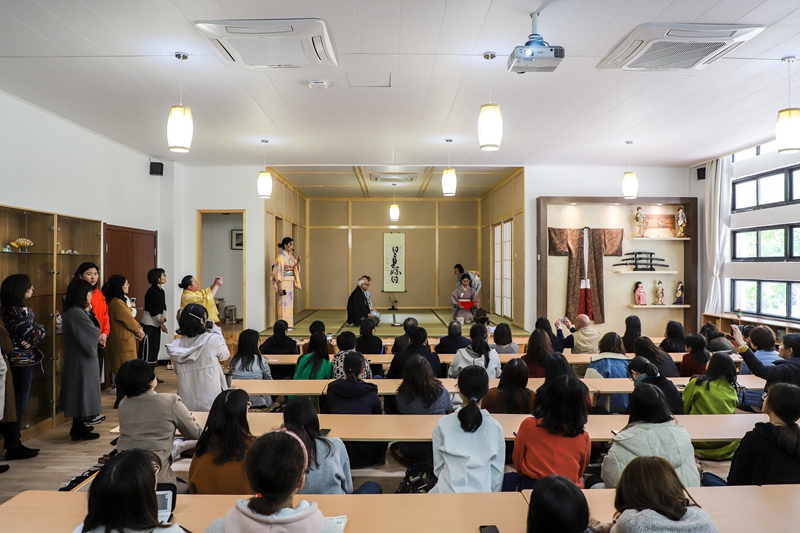 3月11日,学院在E教学楼日本文化体验中心举办日本茶道体验会(里千家)。本次日本茶道体验中心由校工会主办、十大博彩平台 分工会承办,校党委副书记李军、校工会主席金世灯、十大博彩平台 院长江静、副院长吴玲及来自全校各部门、各学院的30多位老师、十大博彩平台 30多名学生及日本千叶大学来我校交流学习的8名学生参加了本次茶道体验会。