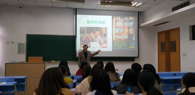 4月4日上午,上海杉达学院日语系副主任、上海民办高校日语协作组副主任、中国翻译协会专家会员田建国教授莅临十大博彩平台 ,为十大博彩平台 研究生一年级学生做了题为《翻译家村上春树》的学术讲座。