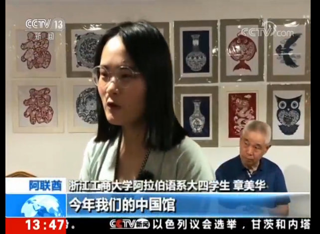 上图为阿语1501班章美华同学接受采访