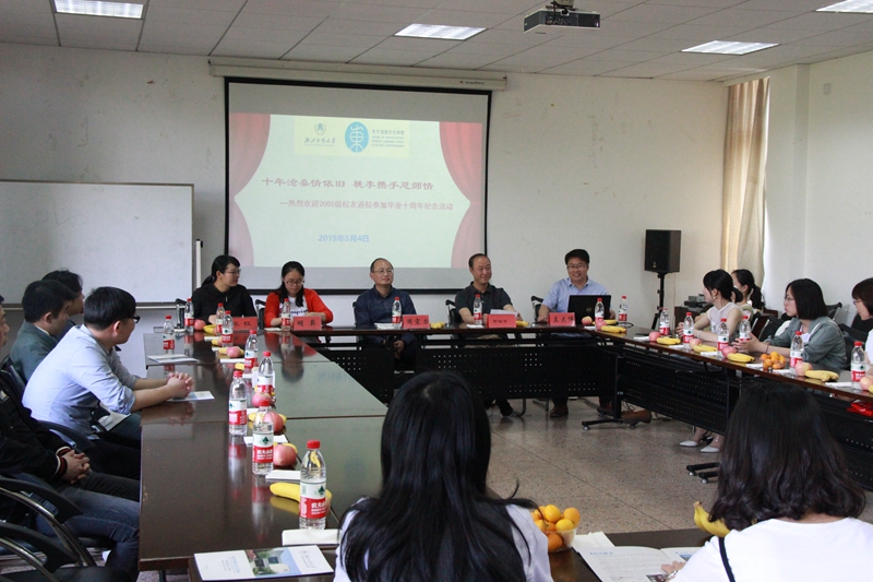 5月4日,正值“五四”运动百年纪念日,也是“五一”小长假最后一天,十大博彩平台 数十位2009届毕业生回到学院参加毕业十周年纪念暨校友返校日活动。学院党委书记周宏力、副院长董科出席校友座谈会,日本语言文化系副教授、日汉翻译研究所所长贾临宇、学院办公室主任明薪、日本语言文化系副主任(主持工作)陈红等老师参加座谈会。座谈会由学生工作办公室主任、校友工作联络员兰大伟老师主持。