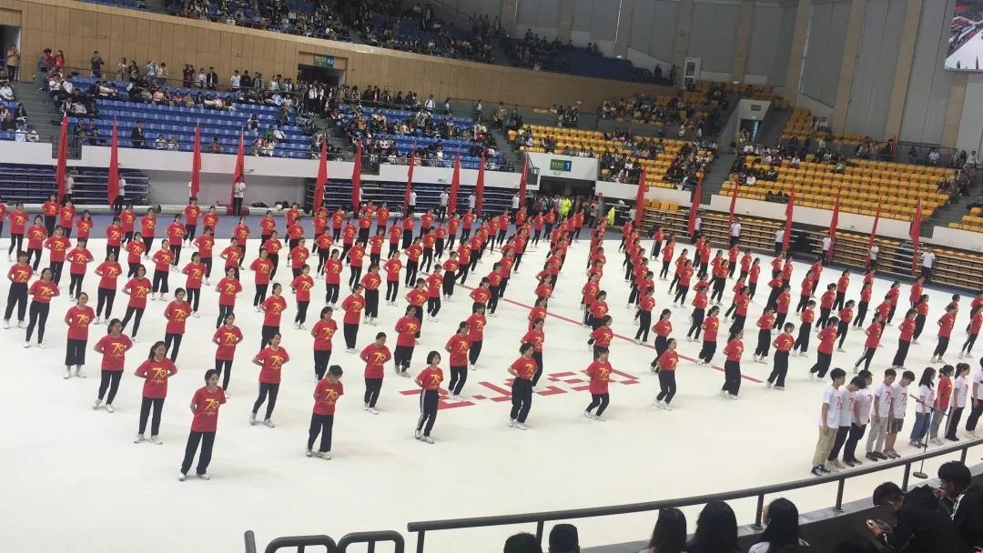 开幕式上,在振奋人心的运动员进行曲中,国旗队、鲜花队、红旗队、管乐队等依次有序入场。随后各学院方队喊着嘹亮的口号,身着代表学院特色的服装依次入场。各个方队精神抖擞,用矫健的步伐、响亮的口号展现着健康向上、团结进取、奋斗拼搏的精神风貌。在裁判员代表、运动员代表宣誓后,大型团体操表演闪亮呈现,引人瞩目。团体操表演分《弹力带舞操》和《我和我的祖国》两大幕,同学们和着音乐节拍,变幻成具有特殊意义的图案,讴歌了对祖国和党的热爱,充分展示了力与度、柔与美的完美结合。精彩的团体操表演充分展示了我校学子的风采,也赢得了全场观众热烈的掌声。