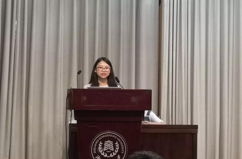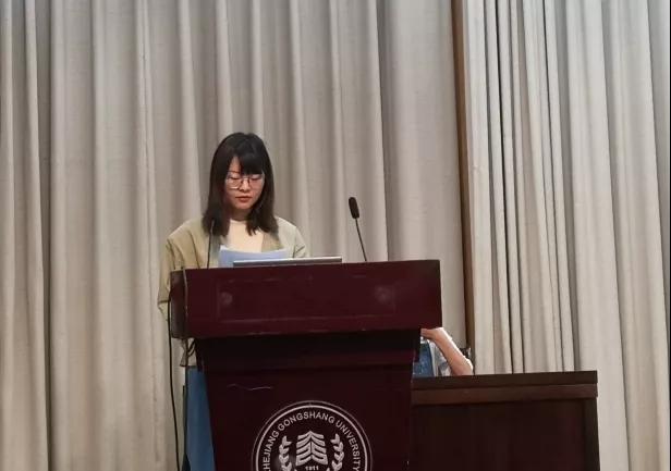 2019年中华全国日语演讲大赛华东赛区三等奖获得者日语1602班李舒迪同学作经验分享。她提到要打好日语学习的基础、积极参加与专业相关的活动以及分享了自己参加中华全国日语演讲大赛华东赛区大赛的历程。