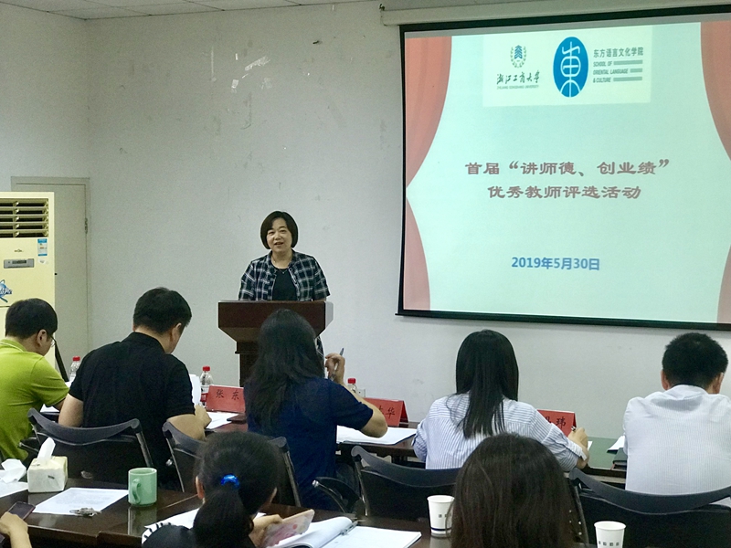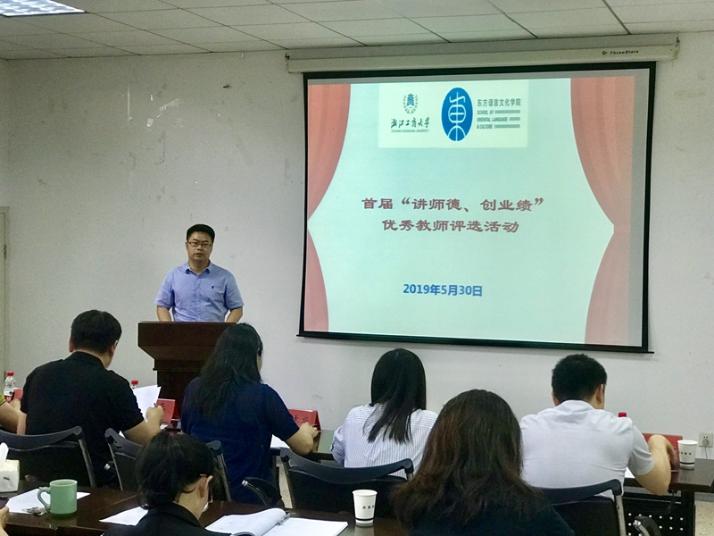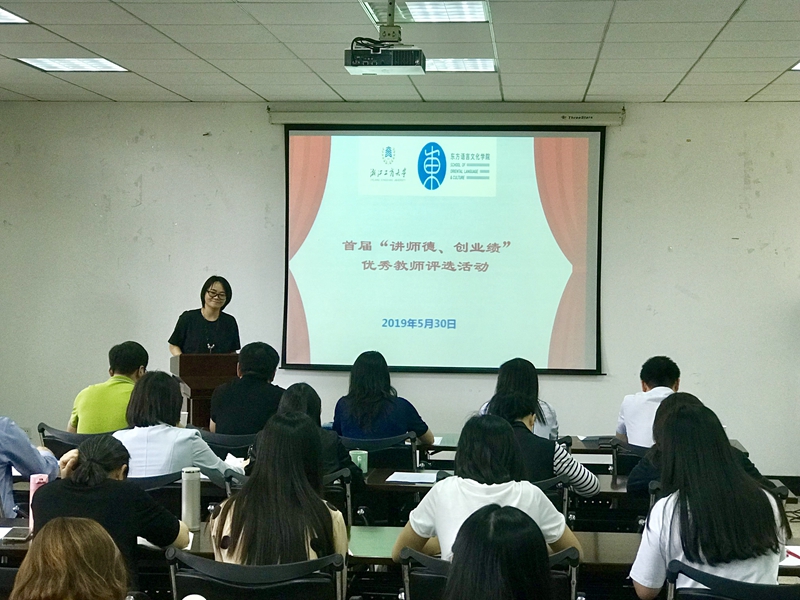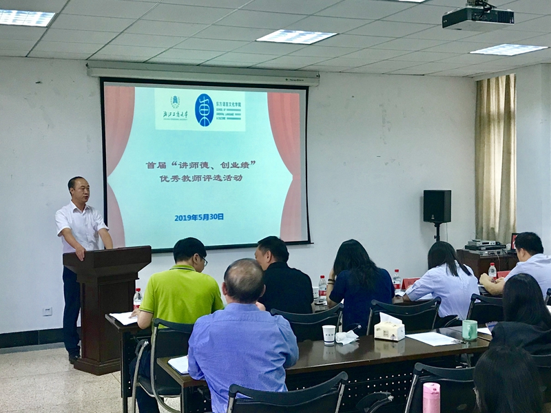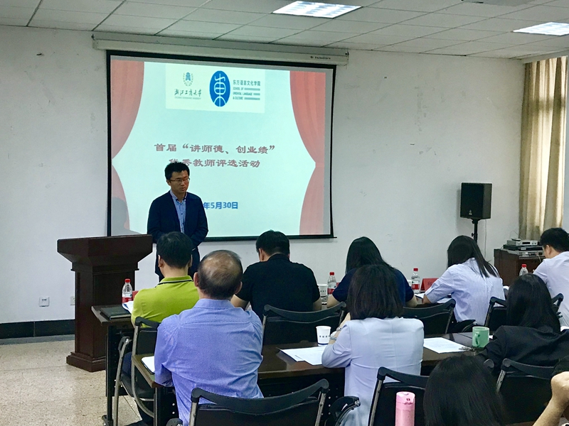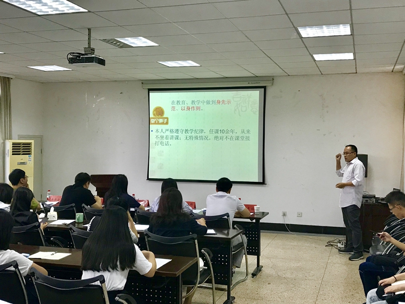 在全院各班学生推荐的基础上,并结合各教师教学科研行政管理等工作业绩,经学院党政联席会讨论,推选出参与此次评选的10位教师。老师们在评选前进行了精心而充分的准备,并依次上台做了3分钟左右的演讲。