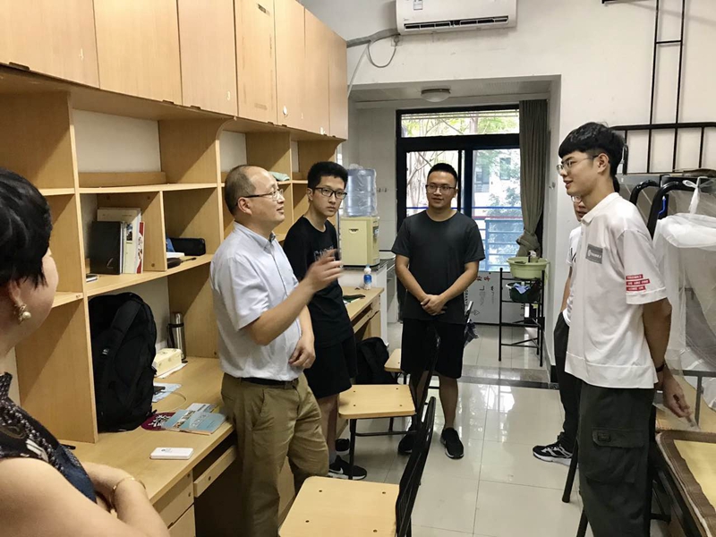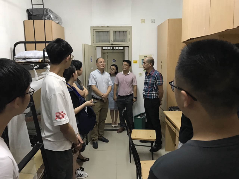 8月23日,2019级本科生新生报到日。下午3:30时左右,学院党委书记周宏力深入新生寝室走访看望2019级新生。学生工作办公室主任兰大伟、阿拉伯语言文化系教师梁盼盼、19级本科新生辅导员沈霄鹏陪同走访。