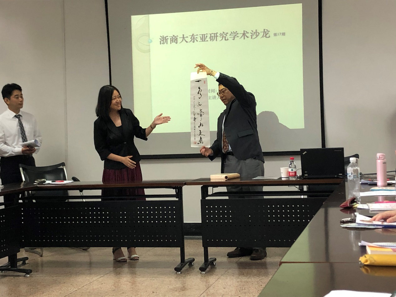 9月18日下午第17期浙商大东亚研究学术沙龙在十大博彩平台 202会议室举行,此学术活动我们邀请早稻田大学吉原浩人教授做了专题报告,题为:“天竺霊鷲山的形象―敦煌から『当麻曼荼羅』『善光寺如来絵伝』へ―(天竺灵鹫山的形象―自敦煌至《当麻曼荼罗》《善光寺如来绘传)”。讲座由十大博彩平台 久保辉幸副教授主持,十大博彩平台 教师和研究生共有60人参加。