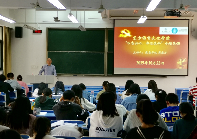 根据学院“不忘初心、牢记使命”主题教育工作安排,10月23日下午,学院召开主题教育专题党课,主讲人为学院党委书记周宏力老师。全体学生党员及19级新生入党申请人、入党积极分子参加党课。