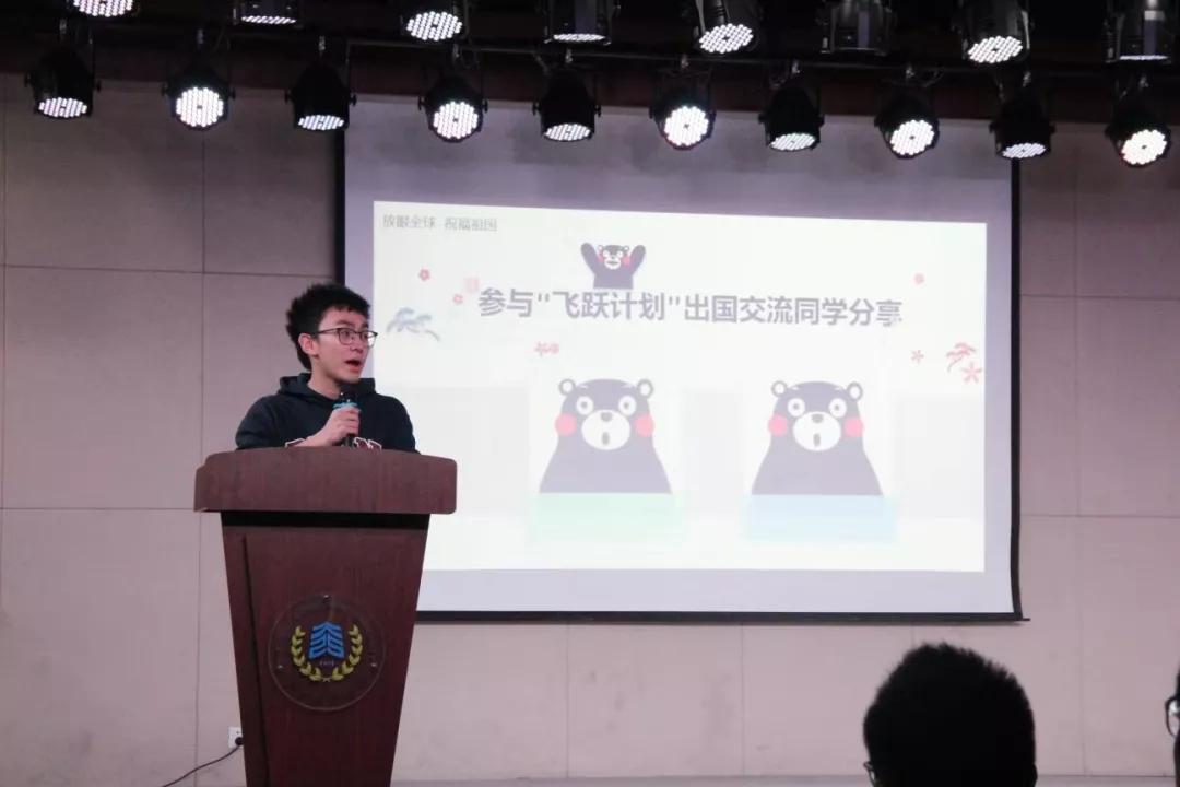 然后是参与“飞跃计划”出国交流的王梓衍、傅乐颖同学分享在欧美学习生活的期间,中国留学生以何种方式度过国庆、感受国庆,以及在欧美校园中所了解到的当地大学生对如今中国发展、新中国成立70周年阅兵仪式、新时代中国与世界的关系等所持的观点与感受。