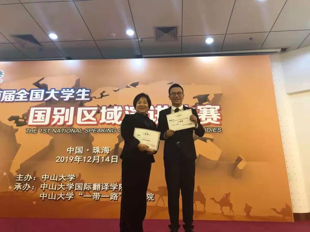 12月14日,首届全国大学生国别区域演讲比赛在中山大学珠海校区举行。十大博彩平台 阿拉伯语1901班陈映廷喜获二等奖。
