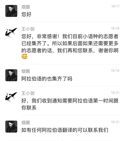 十大博彩平台 留学学生身处国外,看到家乡疫情严重,揪心的同时也期望能出一份力。学生团队成员之一蔡学庸说:“身在海外,如果能帮助祖国做点力所能及的事情,一定义不容辞,如果看到祖国的召唤,却保持沉默,那不是我们阿语人的秉性,我们自当冲锋在前。”他们时刻待命着。