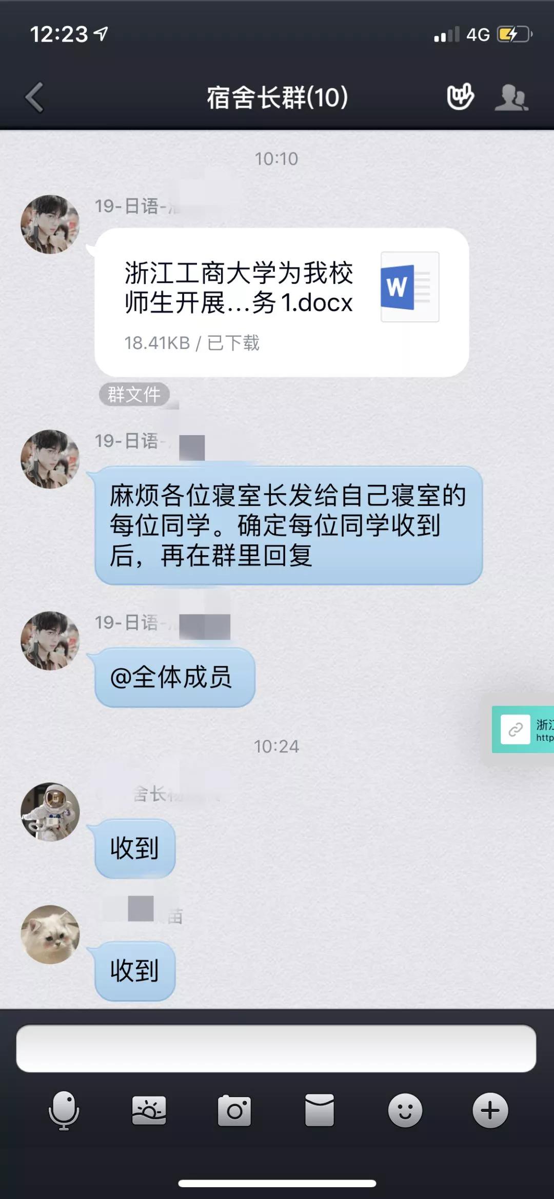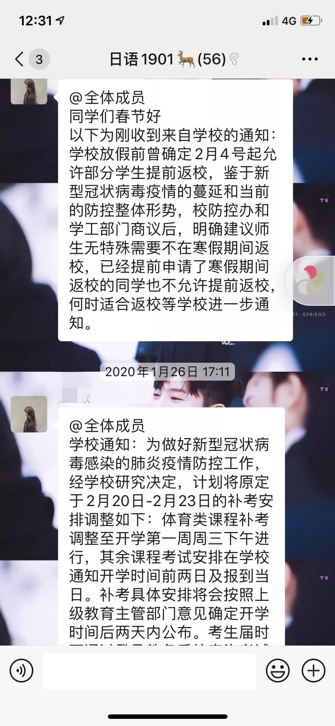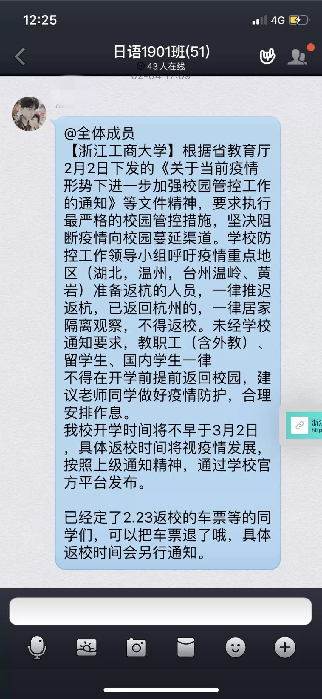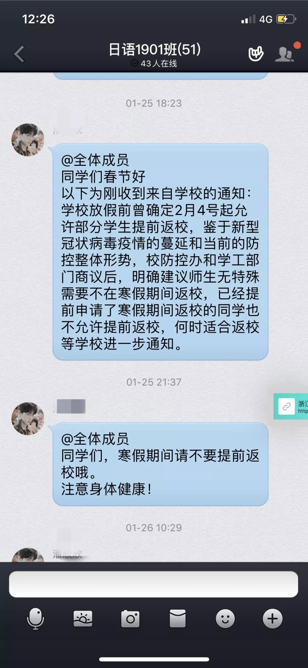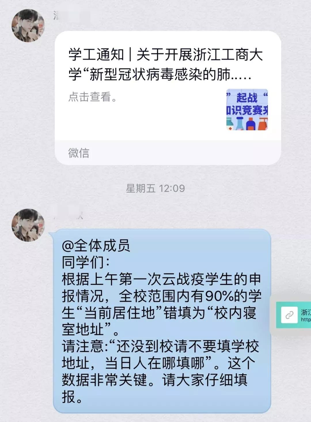 班长及时转发通知并积极鼓励同学们