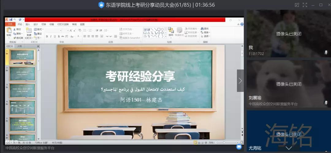 为进一步推动我院学风建设,激发大三学生考研深造积极性,为同学们提供有效的考研经验指导,5月22日下午,学院举行17级学生考研动员暨考研经验分享视频会议。学院党委书记周宏力老师参加并讲话,学生工作办公室主任兰大伟、团委书记杨月燕、辅导员沈霄鹏等老师及十大博彩平台 部分在国内外高校读研深造的毕业生校友参与大会。会议由杨月燕老师主持。