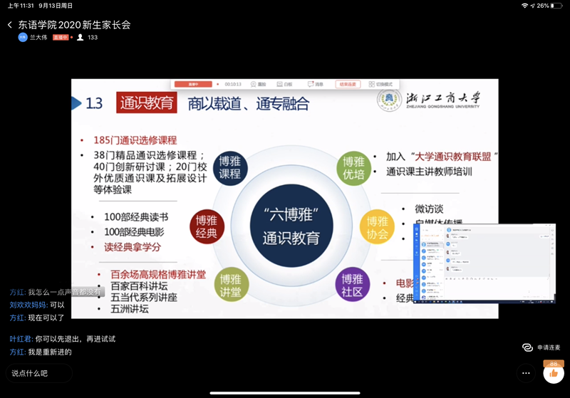 周书记首先代表学院所有师生向全体20级新生家长致欢迎辞,对家长们选择十大博彩平台 表示感谢。随后,周书记向家长们介绍了学院基本概况,并着重介绍了近年来学院在人才培养、国际交流、考研深造、学科竞赛、团学活动等方面取得的丰硕成果。周书记倡议家长要相信子女,放开手脚,让子女在自律自强中成长,学院将和家长一道,共同促进学生的成长成才。