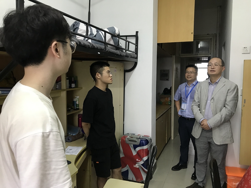 周书记一行首先来到金沙港生活区研究生寝室楼。在宿舍里,周书记详细询问同学们来自何处,鼓励同寝室成员要相互关照,本省的同学要照顾好外省室友,让他们感受到同学间的热情,外省的同学也要尽快自我调整适应环境。学院领导的关切问候让学生们倍感亲切。