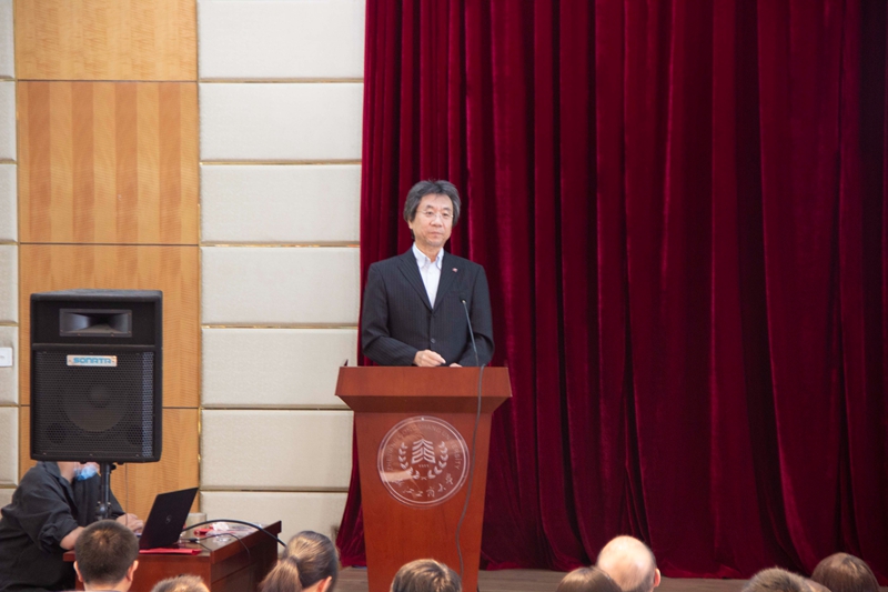日本语言文化系教师代表李国栋教授用幽默的语言向新生们阐述了语言学习的方法,强调语言学习要与文化相连结。李老师同时为刚踏进大学校门的新生指出了大学生活与高中生活的三点不同:一是学习的能动性转变,要从被动学习到自主学习;二是学习方法的不同,语言学习讲究实践出真知;三是生活环境的变化,要开始独立面对生活。李老师希望同学们在学习上要做一块海绵,努力汲取知识,好好珍惜美好的大学时光。