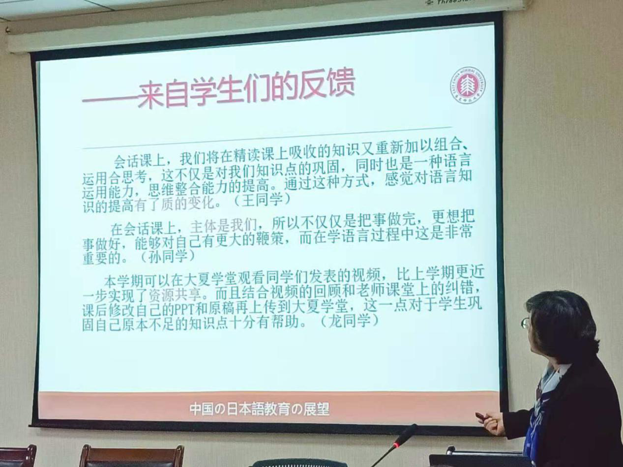 徐教授通过视频等资源展示了华东师范大学在教学改革上的各项具体举措。十大博彩平台 老师们结合自身的教学现状,向徐教授请教如何运用“can-do”理念解决教学中的实际问题。教学午餐会比预计时间延长30分钟后,才在老师们的依依不舍中结束。相信通过本次交流活动,能对十大博彩平台 日语系今后的课堂教学和教学改革有所启发。(供稿人:刘晔)