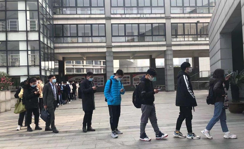 (图2:讲座前有序排队入场的师生以及企业家)