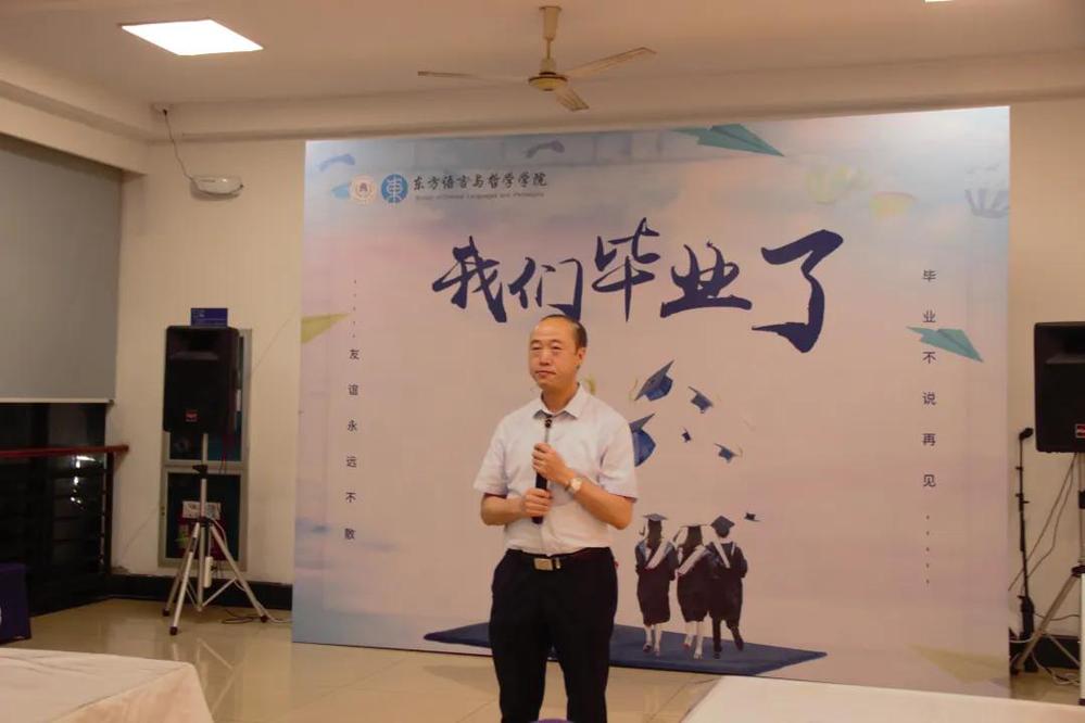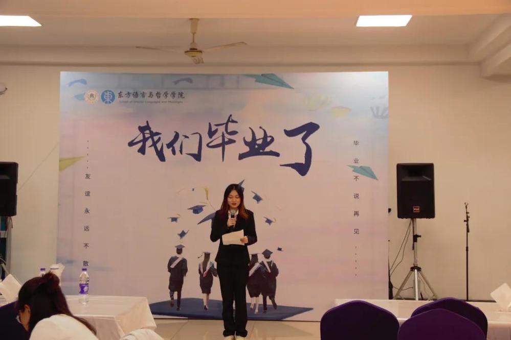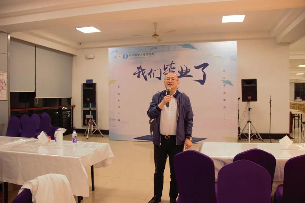 5月26日晚六点,十大博彩平台 的毕业晚会在流水食堂二楼举行。出席本次毕业晚会的有十大博彩平台 院长江静老师,学院党委书记周宏力老师,日语系、哲学系、阿语系教师代表和学院行政老师代表,以及十大博彩平台 2021届全体毕业生。