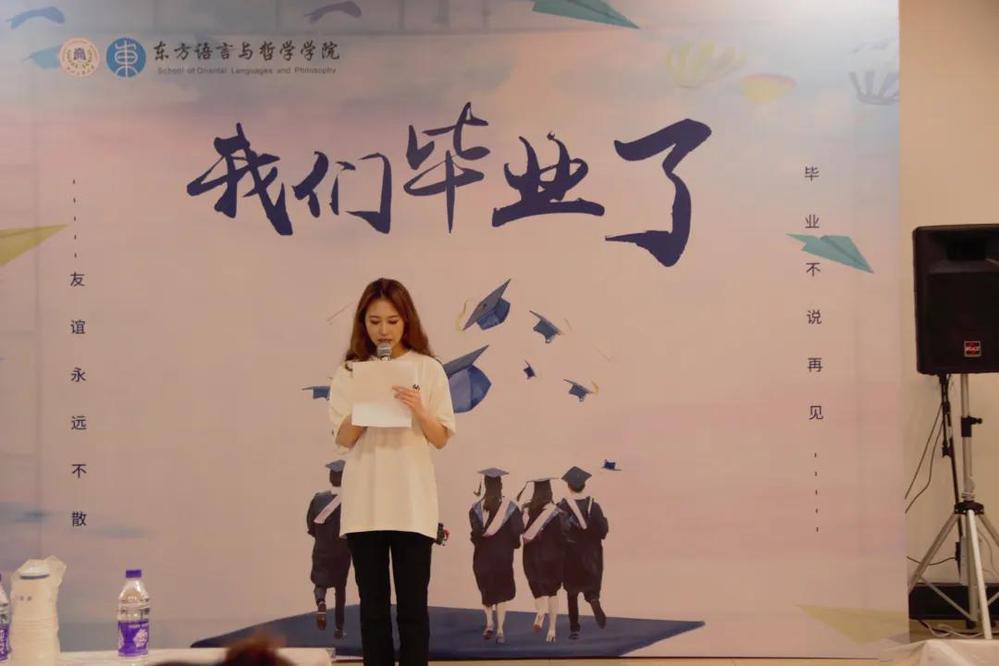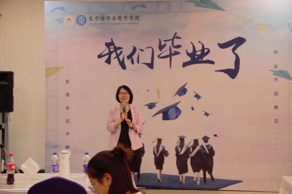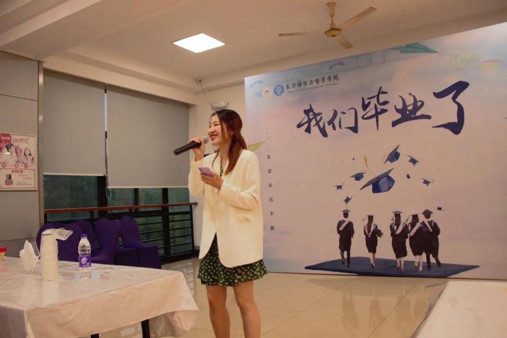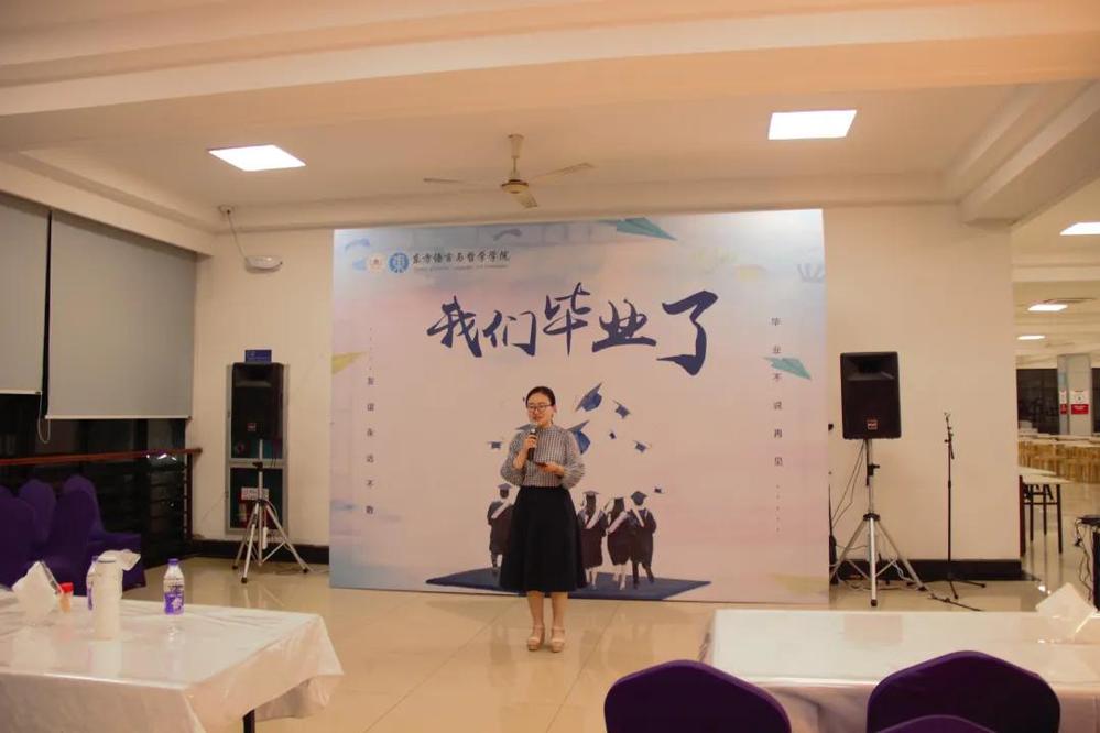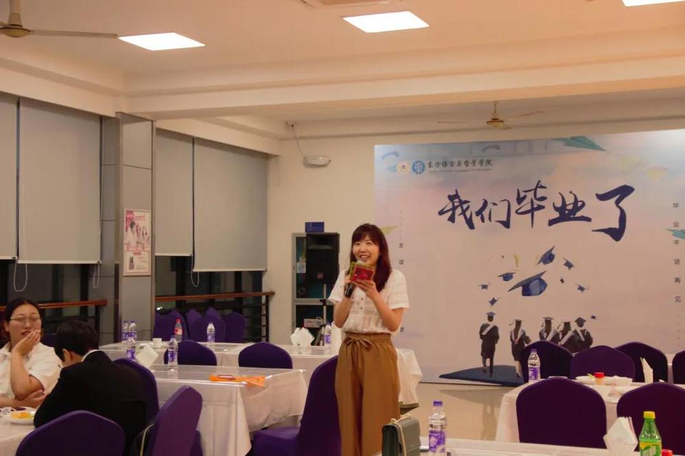 阿语系教师代表梁盼盼老师也有一些叮咛与希冀想要嘱托。四年间我们有泪水有收获,她祝大家工作顺利,在新的学校顺利,也欢迎同学们常回来看看。