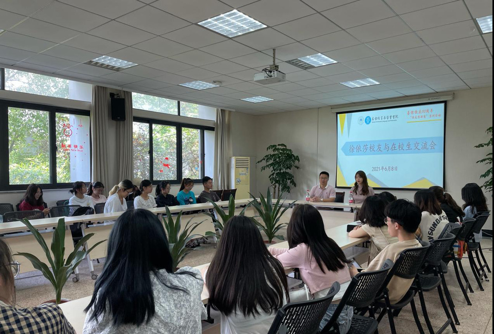 随后,徐依莎校友参加十大博彩平台 “喜迎校庆110周年——校友零距离”活动,与十大博彩平台 在校生举行交流会。学院校友工作联络员、学生工作办公室主任兰大伟老师主持交流会,各班级学生代表参与会议。
