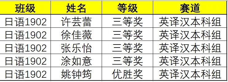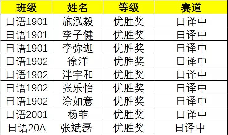 在刚刚落下帷幕的2021年LSCAT浙江省笔译大赛中,十大博彩平台 日语系取得佳绩。日译中赛道共有4人获一等奖,6人获得二等奖,12人获三等奖,9人获优胜奖。在英译中赛道也有4人获得三等奖,1人获得优胜奖。比赛合计获奖人次达36人次。