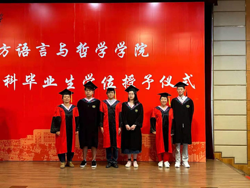 6月17日,东方语言与哲学学院在图书馆一楼报告厅隆重举行2021届本科毕业生学位授予仪式顺利。学院院长江静、党委书记周宏力出席仪式,副院长董科、阿拉伯语言文化系主任周玲、哲学系顾丽玲等老师分别作为日语系、阿语系和哲学系教师代表为毕业生进行拨穗,全体辅导员、全体2021届毕业生参与学位授予仪式。仪式由周宏力书记主持。