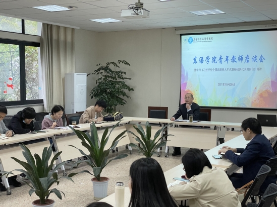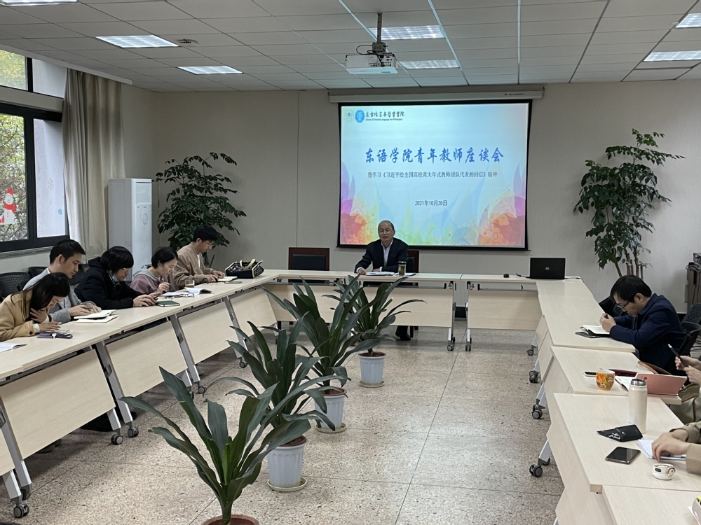 为贯彻落实学习教育部印发《关于学习贯彻习近平总书记给全国高校黄大年式教师团队代表重要回信精神的通知》,深刻领会回信精神内涵,提高学院教师的责任感、使命感, 10月20日,十大博彩平台 于东语楼202会议室组织召开教工学习重要回信精神专题学习会并开展青年教师座谈。周宏力书记、江静院长、董科副院长参与此次会议。