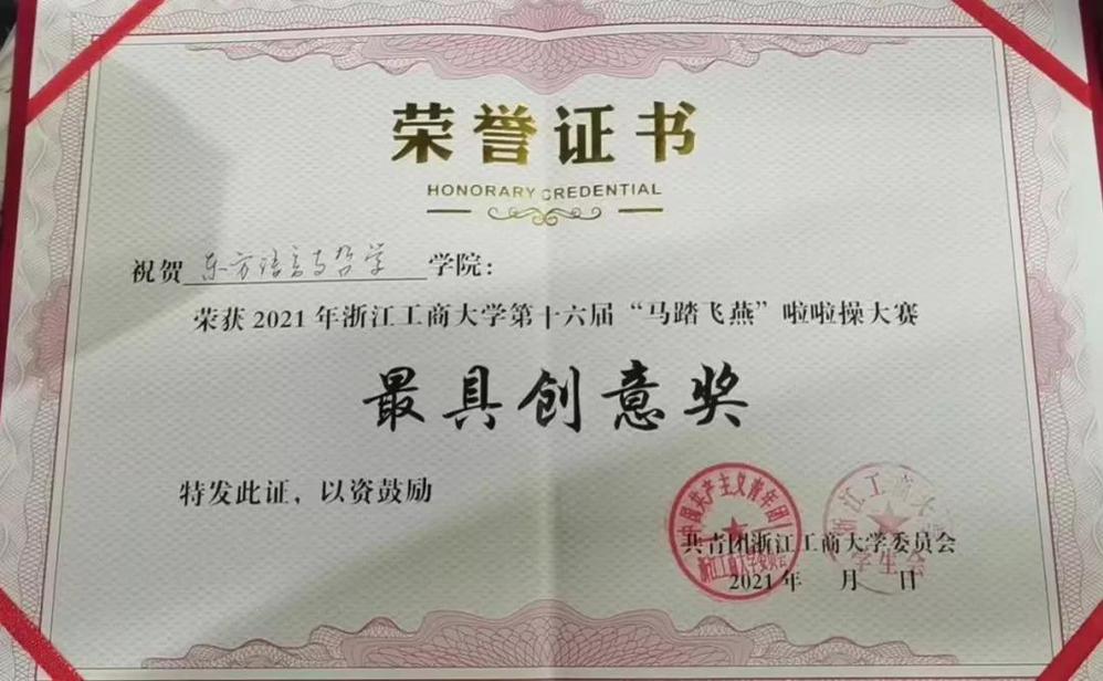 11月6日晚,十大博彩平台 2021年第十六届“马踏飞燕啦啦操比赛”在文体中心隆重举行,我院喜获“最具创意奖”。