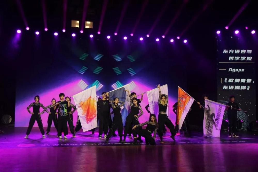 “杭州你好!亚运你好!”2022年杭州将迎来万众期待的亚运会,十大博彩平台 学子们也积极地涌入迎接亚运的浪潮,以舞蹈的形式为展现着东语学生热情迎亚运的场景。伴随着动感的音乐和绚丽的灯光,舞台上挥舞起来五面不同意义的旗帜下,十大博彩平台 啦啦操队员们热情起舞,击掌,旋转,踏步,奔跑……除了这一个个热烈而鲜活的青春模样,台下的观众也真切感受到了赛场上竞技的火热精彩和充满热血的亚运精神。