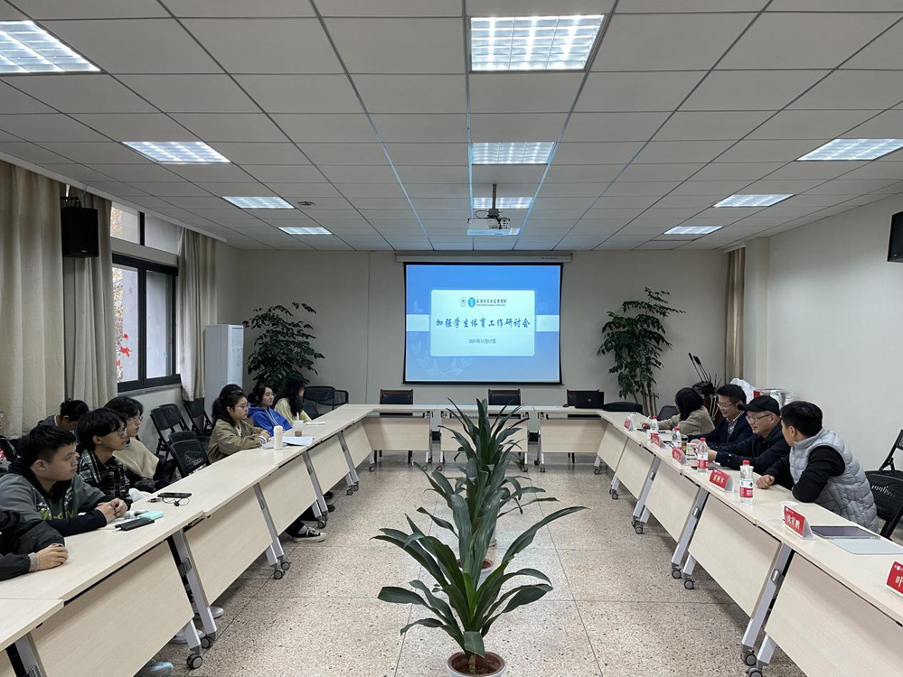 夏秋冬老师建议十大博彩平台 将院内特色体育项目与体育社团活动相结合,推动课外体育活动开展,全面提升学生体质水平。紧接着,夏老师与学院学生会负责学生及班级体育委员进行交流互动。