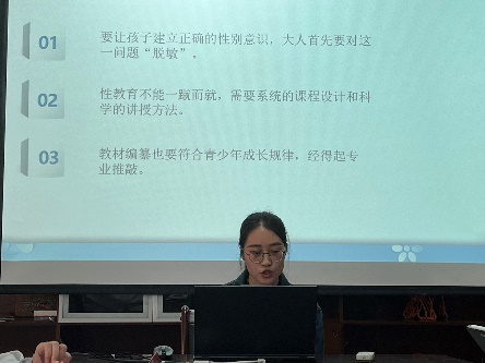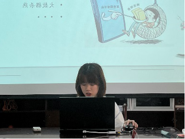 有多名同学针对当今中国女性现状发表看法:戴丽颖、刘瑞分别从“小花梅事件”出发,分析了妇女拐卖事件背后的原因,并就解决该事件提出了自己的见解;卢星从今年全国两会出发,分享了新时代女性的榜样与力量。