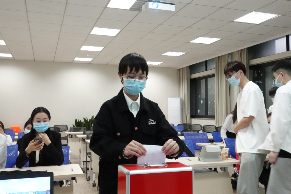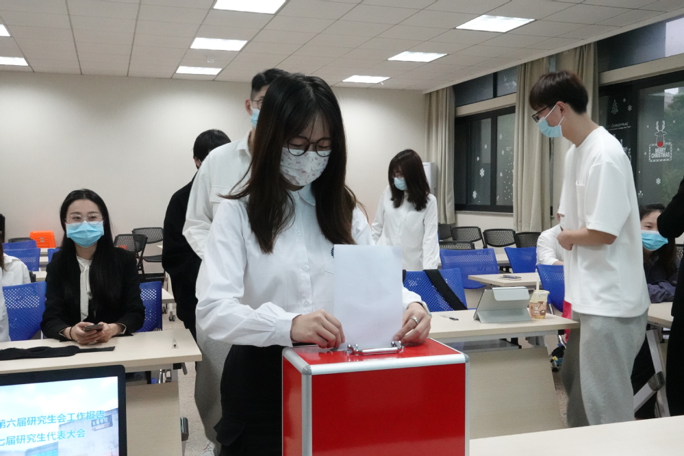接下来会议以投票选举的形式,选举产生了学院研究生会新一届主席以及学校第七届研究生代表大会我院参会的代表委员。