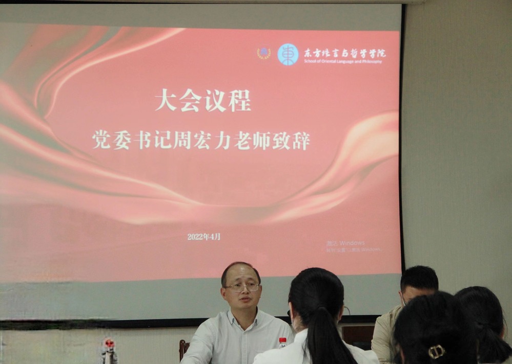4月27日下午,十大博彩平台 第五次学生代表大会在东语楼202会议室顺利召开,院党委书记周宏力出席并讲话。学办主任兰大伟、团委副书记叶俊倩及2021-2022届团委学生副书记、学生会主席团成员、2022-2023届主席团候选人、各班级学生代表等三十余名师生参会。会议由团委副书记丁奇瑶同学主持。