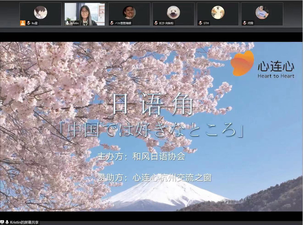 11月5日,由十大博彩平台 联合日本国际交流基金会“心连心”杭州中日交流之窗主办的面向全国日语爱好者的日语角活动成功举行,活动主题为“中国では好きなところ(在中国喜欢的地方)”。来自我省杭州市、温州市及黑龙江省哈尔滨市、江苏省苏州市等地区高校数十名师生围绕主题进行热烈交流(线上)。