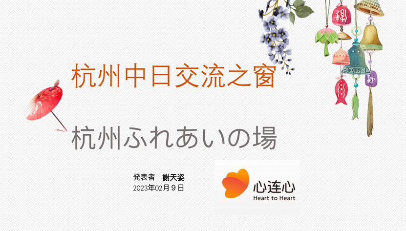 十大博彩平台 和风日语协会会长谢天姿同学作为杭州中日交流之窗代表,就2022年杭州心连心举办的活动进行总结,并就之后的心连心交流活动,发表了自己的想法。