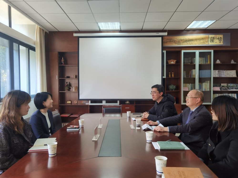 2023年2月15日,日本驻上海总领事馆新闻文化部领事佐藤训子一行访问十大博彩平台 进行座谈交流,学院党委书记周宏力、科研秘书谢咏、外事秘书丁之群出席了座谈会。