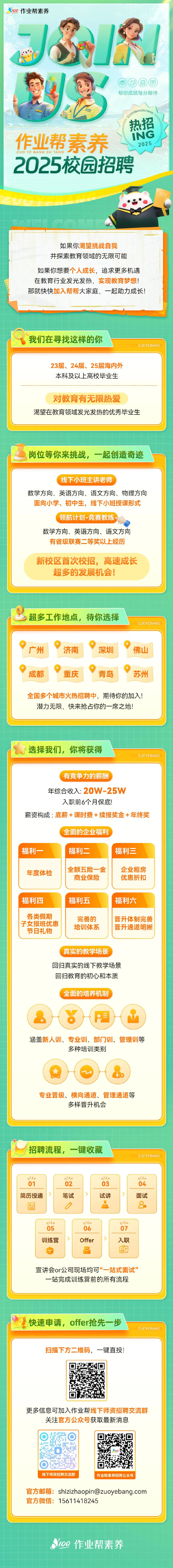 职等你来丨作业帮素养公司招聘信息(7个岗位)