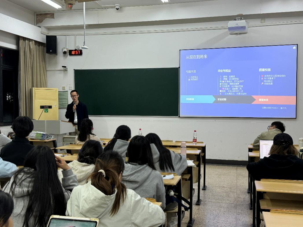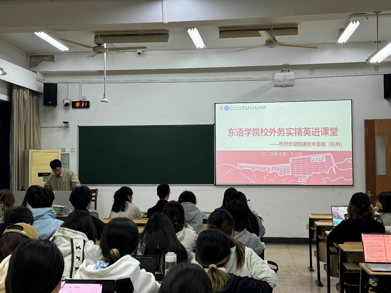 当课堂知识与行业前沿碰撞,会擦出怎样的火花?10月29日下午,日语系邀请到十大博彩平台首届日语专业优秀毕业生,现任凯捷技术咨询(杭州)有限公司集团金融事业部中华区招聘经理的施玉玲学姐带着其团队一行受邀走进《大学生职业发展规划》课堂,五位嘉宾带着丰富的行业经验、前沿的职场洞察,为同学们带来了生动的一课。本次活动由张政老师主持。